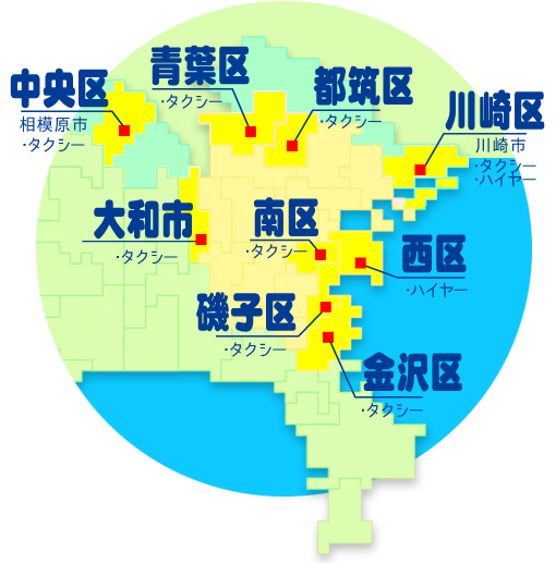 例えば川崎営業所ではハイヤー20台、タクシー70台(ジャパンタクシー、セダン、1BOX等)を保有。
