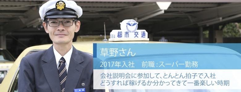 元々クルマの運転が好きなので運転ができる転職を考えてたんです。同僚に「タクシー運転手」に興味があることを話したら、所長が同僚のお知り合いで、「ウチで働くか?」と声をかけていただきました。
