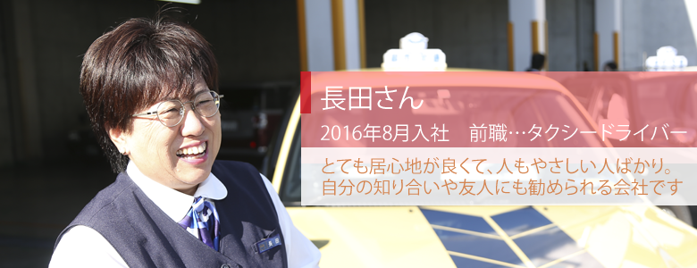 どの営業所の中もすごく雰囲気がいいんです。本音で話しやすい環境を作ってるのは所長の人柄が大きいのかもしれません。事務所の社員も乗務員と個人的に飲みにいったり遊びに行ったり、人間関係の良さでも個人的にはタクシー会社でウチがNO1だとも思っています。ずば抜けて良い会社だと思ってます(笑)。